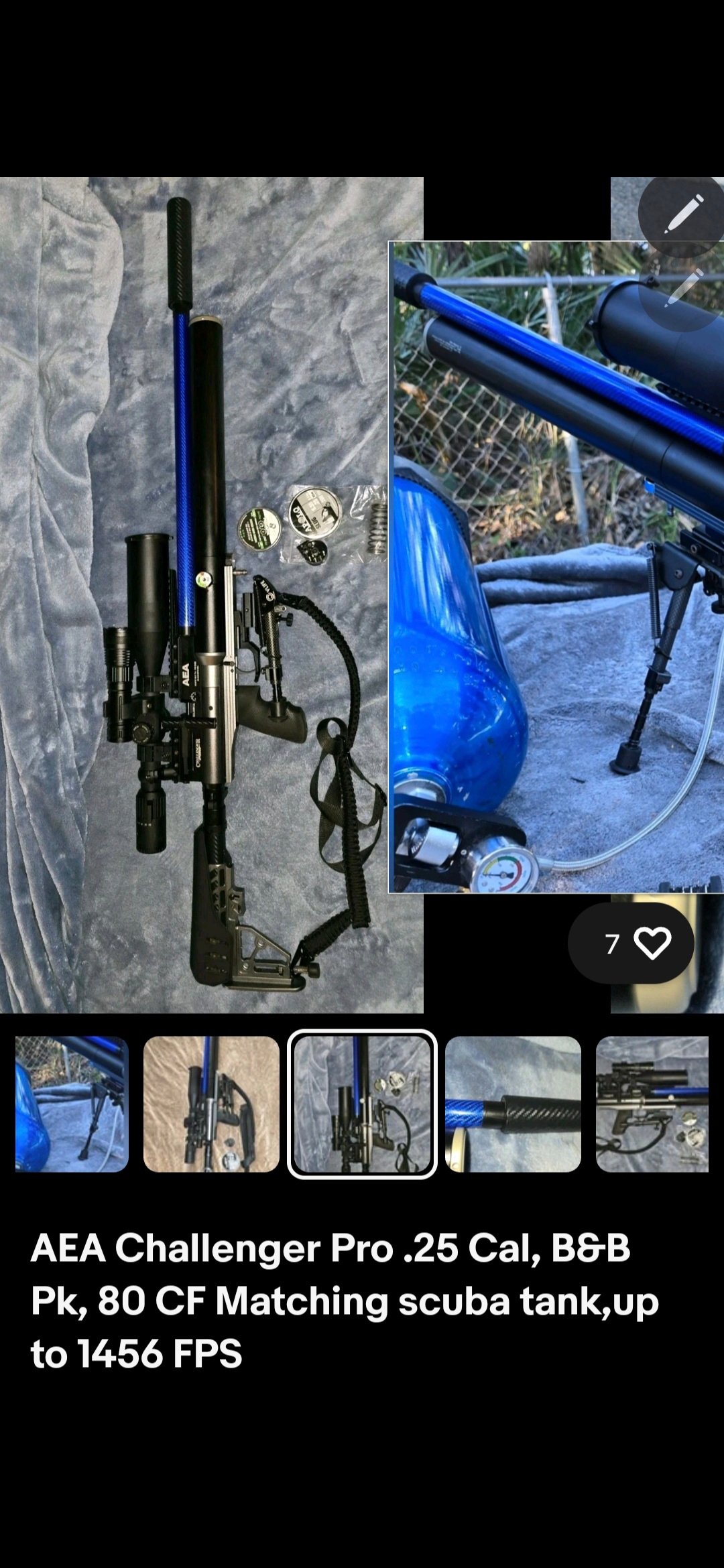AEA CHALLENGER PRO .25 UP TO 123 FPE & SPEEDS OVER 1450 FPS WITH THE B&B PK. 80 CF SCUBA TANK
